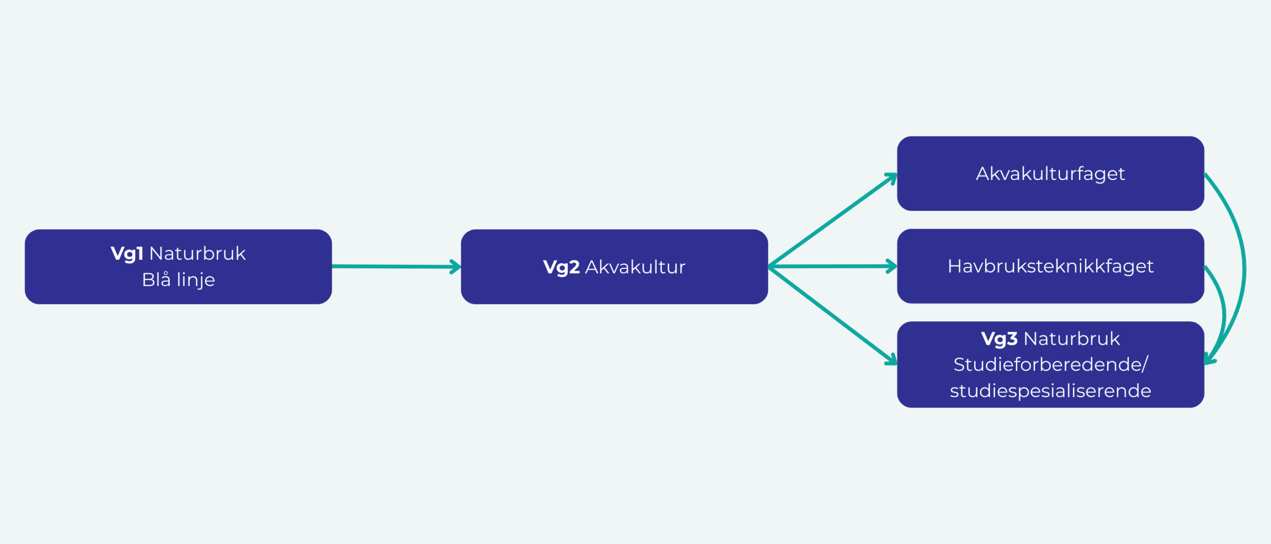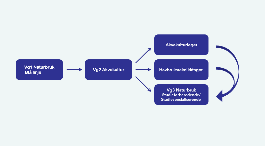 Vg2 Akvakultur bygger på Vg1 Naturbruk, og er et tilbud til deg som ønsker å jobbe med akvakultur og oppdrett. Som elev lærer du å se sammenhengene mellom produksjon, natur, teknologi og menneskelig aktivitet.